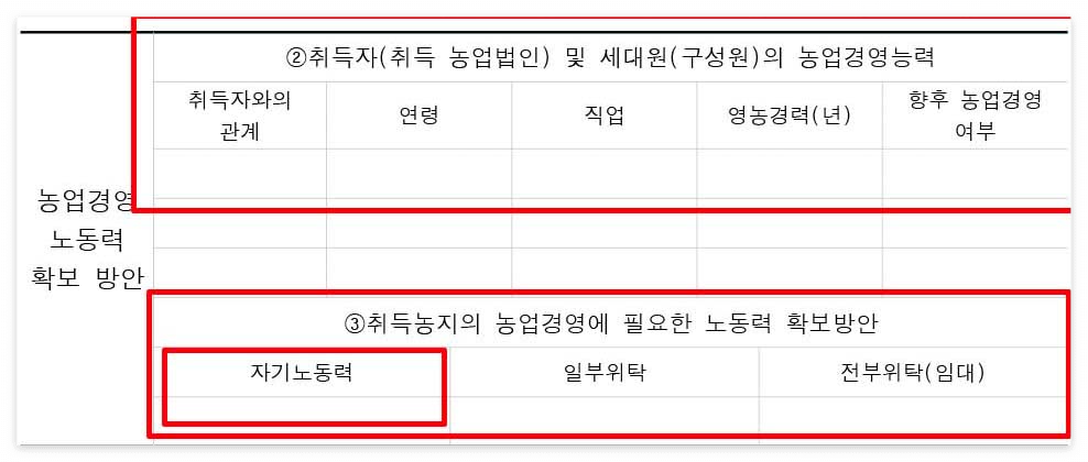 ③ 취득농지의 농업경영에 필요한 노동력 확보방안