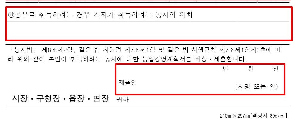 ⑪ 공유로 취득하려는 경우 각자가 취득하려는 농지의 위치