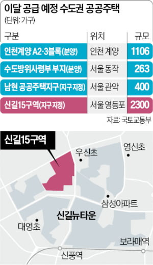 수도권 3기 신도시 중 처음으로 이달 인천 계양지구에서 아파트가 공급된다. 서울에선 동작구 수도방위사령부(수방사) 부지를 비롯해 관악구 남현지구, 영등포구 신길15구역 등 역세권 공공주택