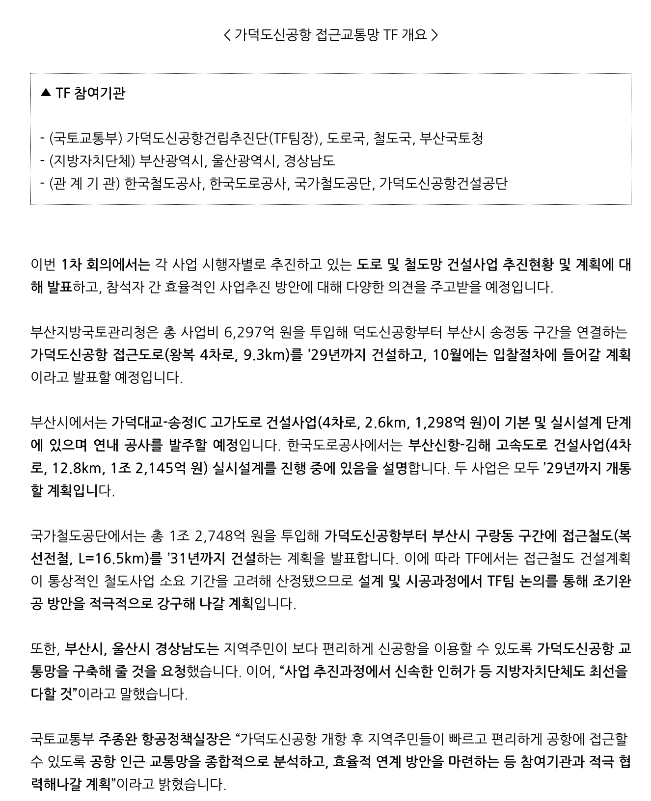 국토교통부(장관 박상우)는 8월 28일 오후 정부세종청사에서 ‘가덕도신공항 접근교통망 전담팀’(이하 “...