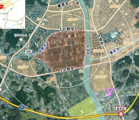 - 청주분평2지구 : 청주 서원구 분평동, 장성동, 장암동 일대 130만m2, 청주역, 오송역을 중심으로 산업단지 조성