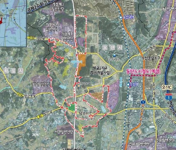 - 오산세교 : 가수동, 가장동, 궐동 433만m2 일대에 조성