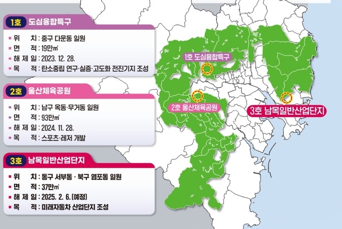 이번 개발제한구역 해제는 민선 8기 들어 세 번째이다. 시·도지사의 개발제한구역 해제 권한 확대 이후 울산시가 직접 해제한 사업은 울산체육공원에 이어 두 번째이다. 해제 면적은 149만㎡로 여의도 면적의 3분의 1, 축구장 208개 면적에 달한다.