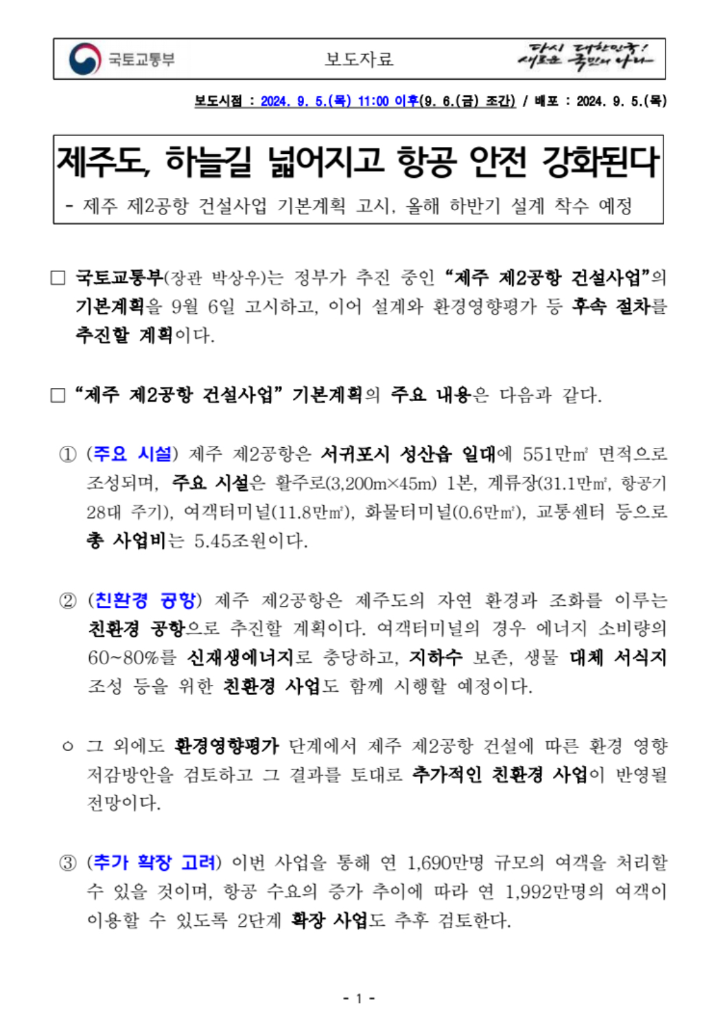 | 제주 제2공항 기본계획 빠르면 이번주 고시할 듯 (1) | 2024.09.04 |