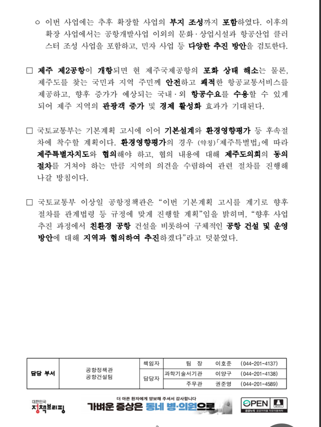 국토교통부가 제주 제2공항에 대한 기본계획(안)을 공개한지 1년 6개월 만에 예산 협의를 마치고 본격적인 후속 절차에 돌입했다.5일 국토부는 ‘제주 제2공항 건설사업 기본계획’을 6일자로 고
