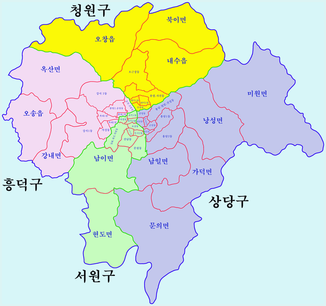 2014년 7월1일 청원군이 청주시로 통합되면서 기존의 2구를 4 구로 재편하였습니다.