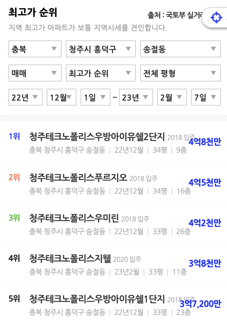 지역 분석 - 흥덕구 송절동