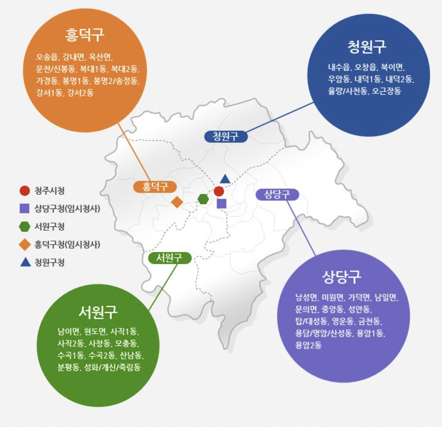 2014년 7월1일 청원군이 청주시로 통합되면서 기존의 2구를 4 구로 재편하였습니다.
