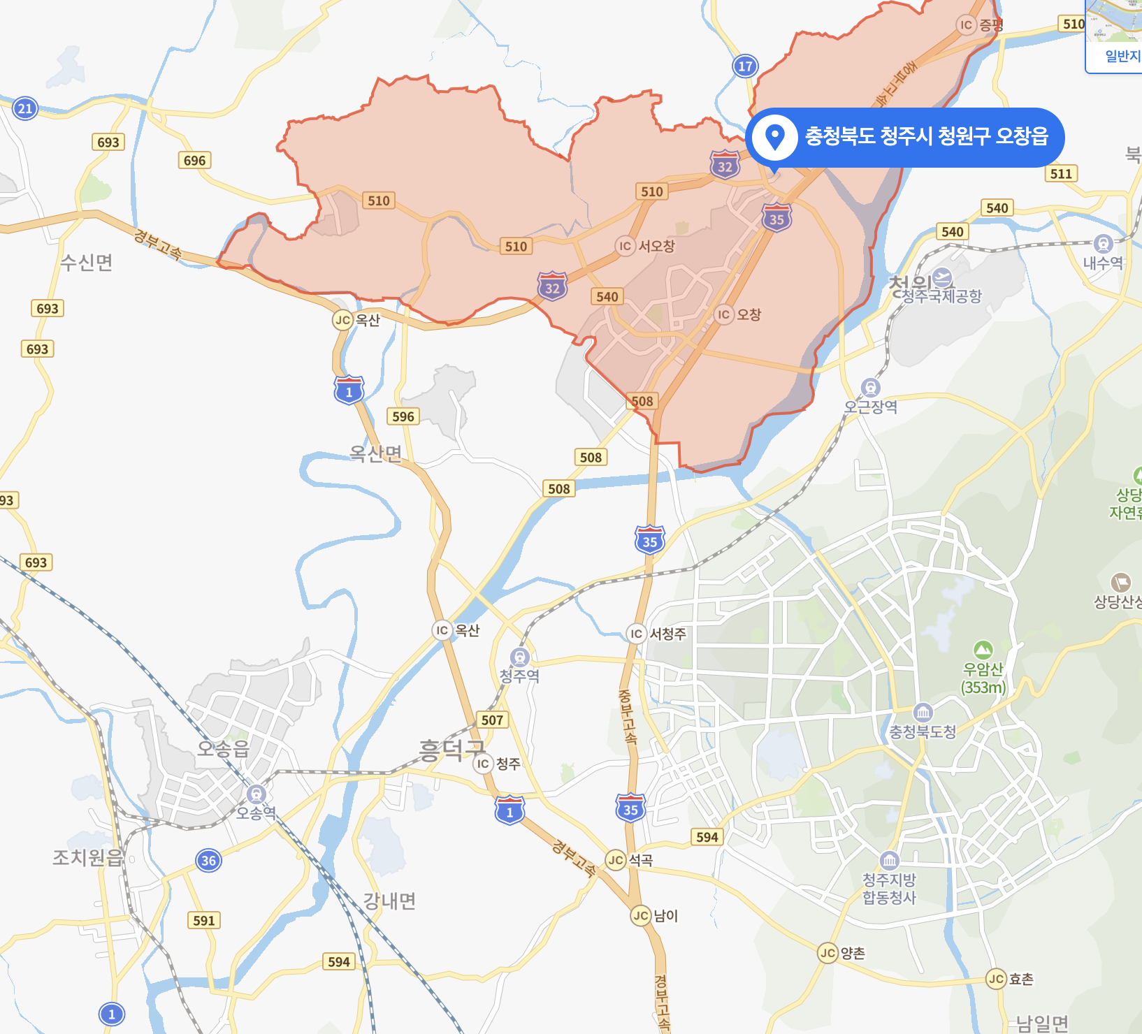 지역 분석 - 흥덕구 옥산면