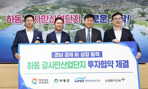 2014년 이후 표류하던 하동 갈사산업단지 조성사업 재개 첫 단추가 꿰졌다. 경남도·광양만권경제자유구역청 하동사무소·하동군과 ㈜한국토지신탁은 27일 도청에서 투자협약을 했다.한국토지신탁은 약 1조 6000억 원을 투입해 갈사산업단지를 개발한다. 도와 군, 경제자유구역청은 투자가 원활하