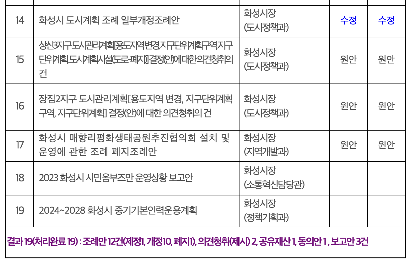 화성시의회(의장·김경희)는 23일 제228회 임시회 제2차 본회의를 열고 9일간 진행된 임시회 의사일정을 마무리했다.이번 제228회 임시회에서는 의원 발의와 화성시장으로부터 제출된 안건 총 16건