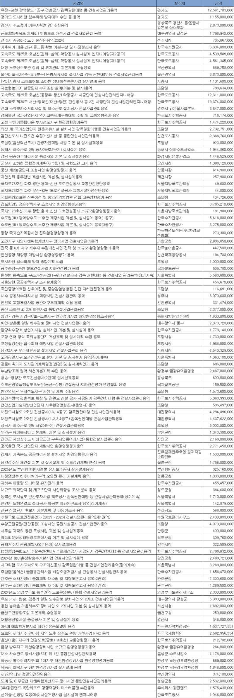 낙찰사 : 건설방재, 유신. 다담, AI