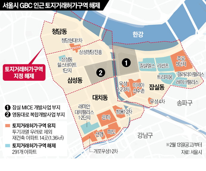 GBC 인근 아파트 291곳 족쇄 풀려…재건축 이슈 없는 지역만 해제